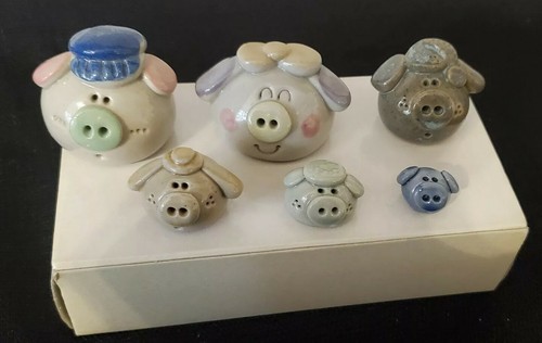 Vtg 6 pcs Miniature Ceramic Pottery Pigs Family Set Lot Japan Rare Kawaii New